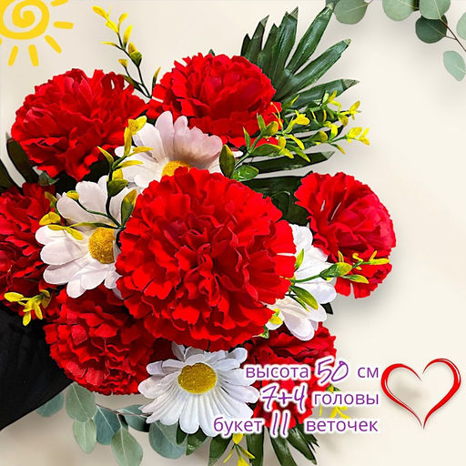 • Букет гвоздики+ромашки 50см 7/4 бутона