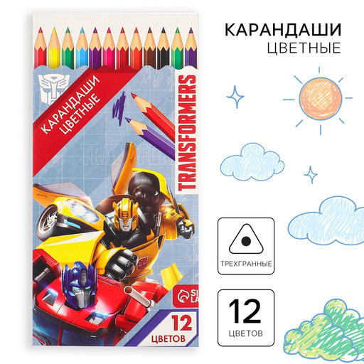 • Цветные карандаши, 12 цветов, трехгранные, Трансформеры