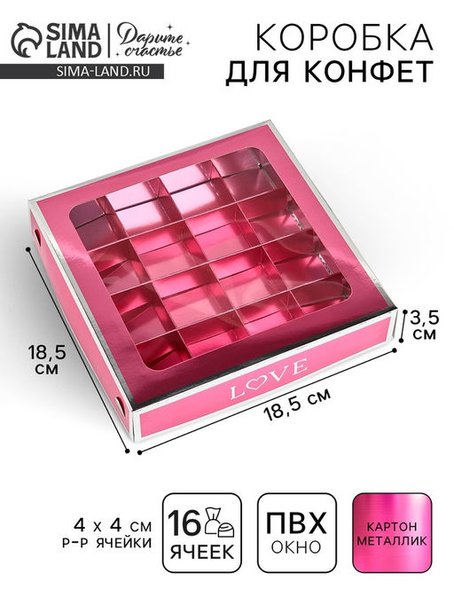 • Цена за 5 шт. Коробка для конфет «Любовь», 18.5×18.5×3.5 см