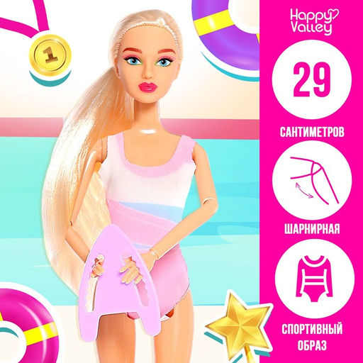 Ваша принцесса любит играть в куклы и увлекается спортом? Тогда кукла-спортсменка точно порадует её! Набор упакован в красочную коробочку, поэтому его можно вручить в подарок даже без дополнительной праздничной упаковки.Подробнее об игрушкеВысота куклы — 29,5 см.Шарнирная в плечах, локтях, кистях рук, бёдрах и коленях, что позволит придавать естественные позы и сделает игру более увлекательной.Длинные волосы, прошитые по всей голове, позволяют делать креативные причёски, будь то косы или локоны.Одежда и обувь легко снимаются, поэтому ребёнок сможет менять образы, проявив фантазию, и почувствует себя настоящим стилистом!В комплект входят аксессуары для плавания: маска с трубкой для подводного плавания, спасательная доска-поплавок, бинокль, громкоговоритель, ласты.Подходит для детей в возрасте от 3 лет.В серии кукол представлены и другие персонажи. Соберите их все!Играть в куклы — полезноВзаимодействуя с такими игрушками, девочка осваивает социальные роли, тренирует фантазию и эстетический вкус. Для кого: Для девочки. Высота, см: 29.5. Возраст: От 3 лет. Вид упаковки: Коробка картонная с PVC. Вид: Модельная. Особенности куклы: Можно причесывать. Пол куклы: Девочка. Тип тела куклы: Полнотелое. Одежда куклы: В купальнике. Комплектация: С аксессуарами. Набор кукол: Нет. Шарнирные: Да. Волосы: Длинные. Тематика куклы: Хобби. Бесплатная доставка: Да. Наша разработка: Да. Размеры товара: 3.5/29.5/7.5.