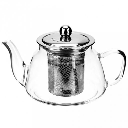 Чайник заварочный 400мл, д11см, h8см, стеклянная колба, ситечко и крышка нержавеющая сталь "Муза" д/горла 7см д/основания-7,5см, в подарочной коробке (Китай)