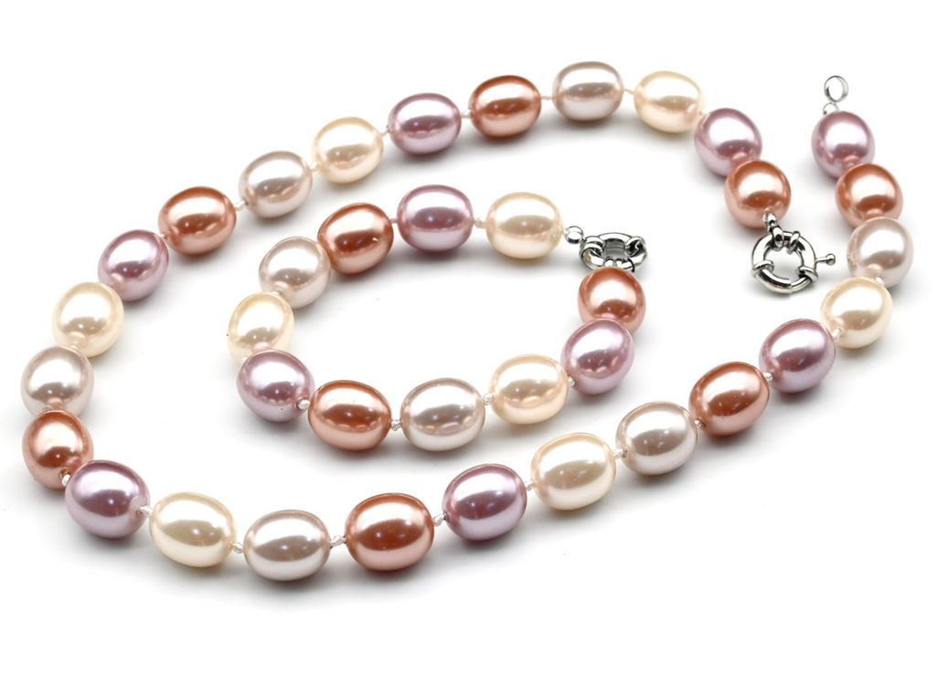 Бусы, браслет из майорки овал 13*15мм цв.белый, розовый, рыжий, 47; 20см