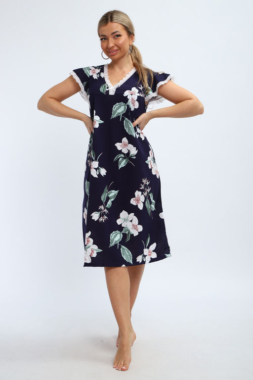 Ночная сорочка является идеальным решением для комфорта во время сна. Изготовлена из приятного на ощупь трикотажа, она мягкая и легкая. Стильная ночнушка с цветочным принтом добавляет в образ уют и атмосферу домашнего уюта. Это изделие удобно для женщин разных возрастов, а также подходит для больших размеров. Широкий покрой обеспечивает свободу движений. Такие рубашки отлично подходят как для девушек, так и для будущих мам. Они создают комфортные условия во время сна или отдыха дома зимой. Модель предназначена для беременных и кормящих женщин, что делает её незаменимой вещью в роддоме.