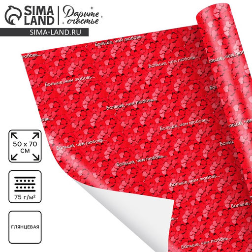 • Цена за 10 шт. Бумага упаковочная глянцевая «Больше, чем любовь», 70×100 см