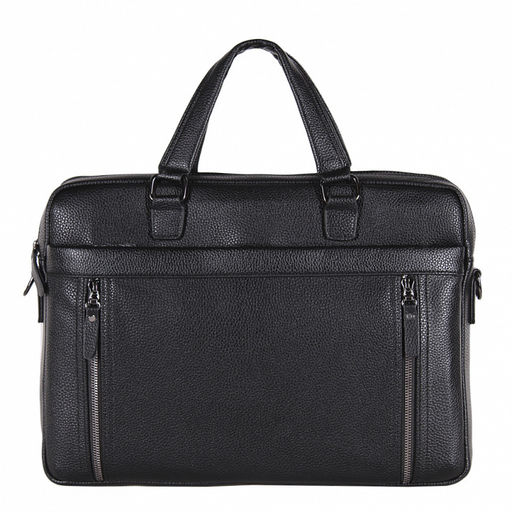 Мужской портфель выполнен из натуральной кожи. Дополнен  фурнитурой темное серебро. Данная модель закрывается на молнию. Каркас полужесткий. Носится в руке за встроенные ручки или на плече. В комплекте имеется съемный ремень.