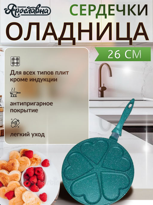• Оладница "Сердечки" 26 см, изумруд