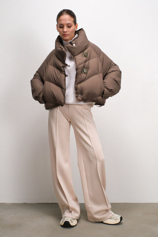 Стильная укороченная куртка, наполненная натуральным пухом и пером для максимального тепла. Застегивается на удобные пуговицы, а низ куртки фиксируется кнопкой. Предусмотрены карманы для всего необходимого. Рукав реглан обеспечивает свободу движений, а низ рукава дополнен молнией и манжетой на кнопках для идеальной посадки. Элегантный воротник-стойка защитит от ветра.
