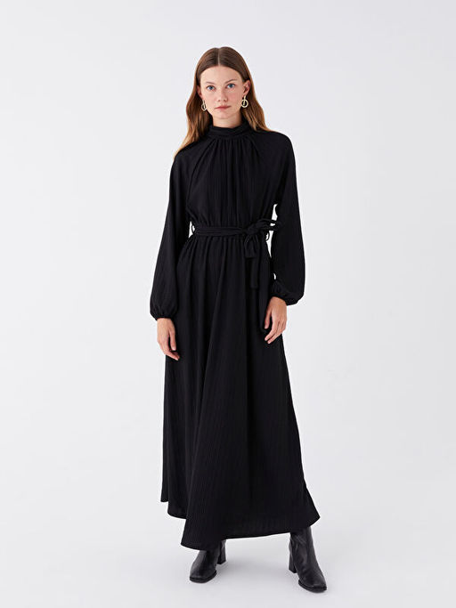 Dik Yaka D?z Uzun Kollu Elbise