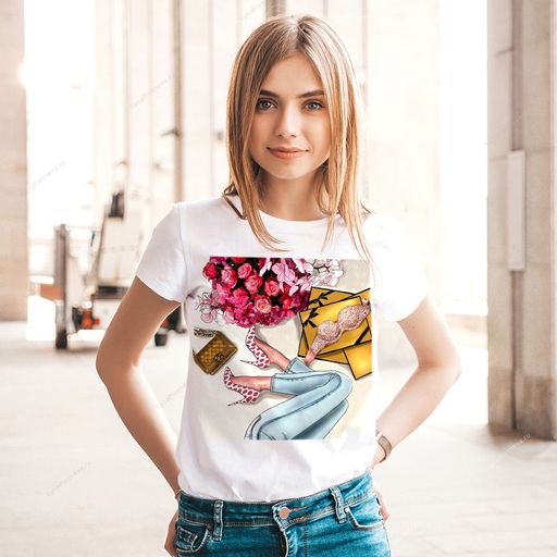 Каждый кристалл приклеивается вручную, что подтверждает прохождение 3-го этап контроля качества футболки и отсутствия производственного брака.