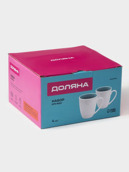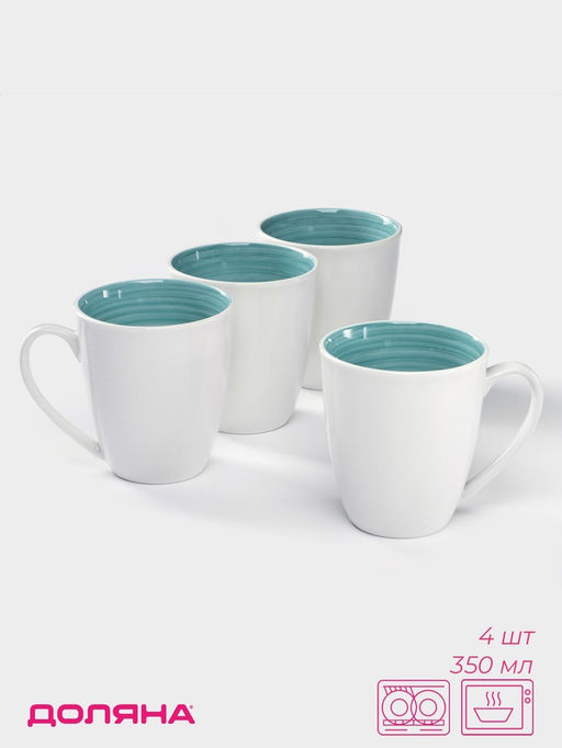 Кружки Доляна «Палитра», 350 мл, 4 шт., фарфор, белые, бирюзовые