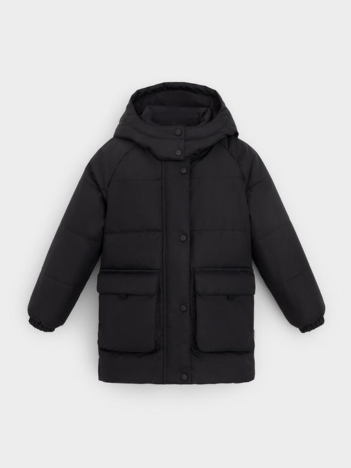 Зимняя куртка для девочки с утеплителем SEE®: 300 г/м2. Выполнена из мембранной ткани с дополнительной тефлоновой обработкой, которая предохраняет изделие от загрязнений и отталкивает влагу. Подклад выполнен из 100% полиэстера Tricot. куртка застёгивается на молнию, предусмотрена защита подбородка. Вшитый капюшон застёгивается на кнопки. На рукавах мягкие манжеты. По бокам два кармана с клапанами. Во всех изделиях верхнего ассортимента для безопасности ребёнка предусмотрены светоотражающие элементы.. Состав: верх: 80% полиэстер, 20% полиуретан; подклад: 100% полиэстер; утеплитель: 100% полиэстер