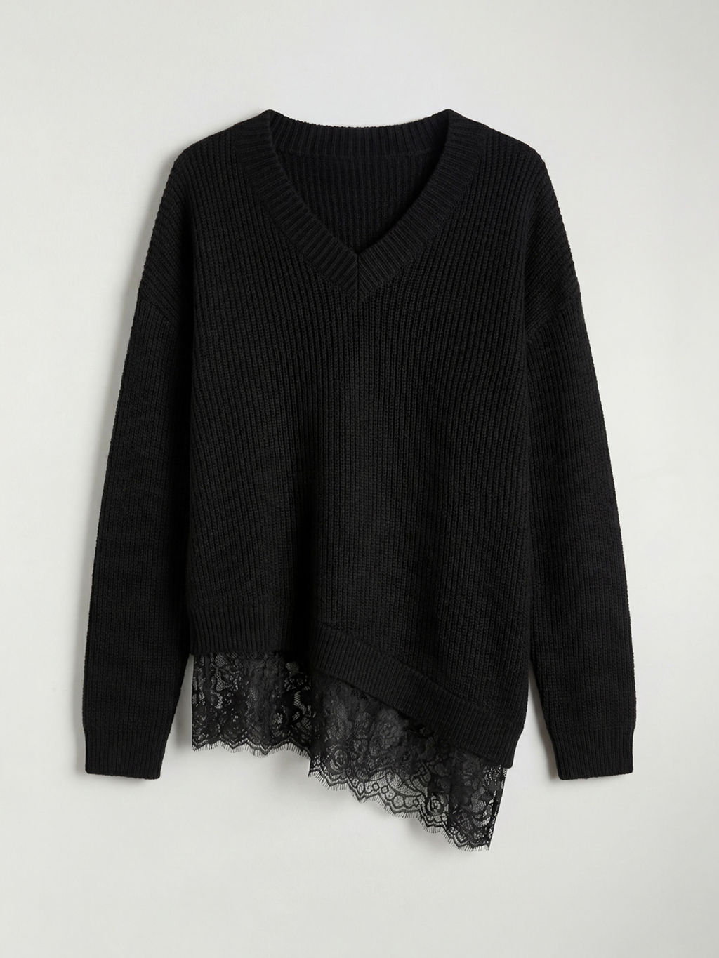 V Yaka Dantel Detayl? Kad?n Triko Kazak