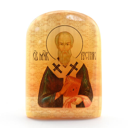 • Икона из селенита "Священномученик Рустик Парижский" арка большая, 45*30*65мм Радуга камня