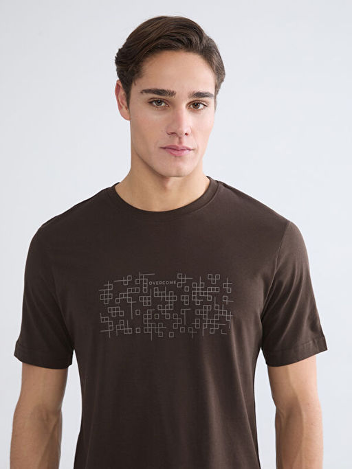 Bisiklet Yaka Bask?l? Penye Erkek Ti??rt