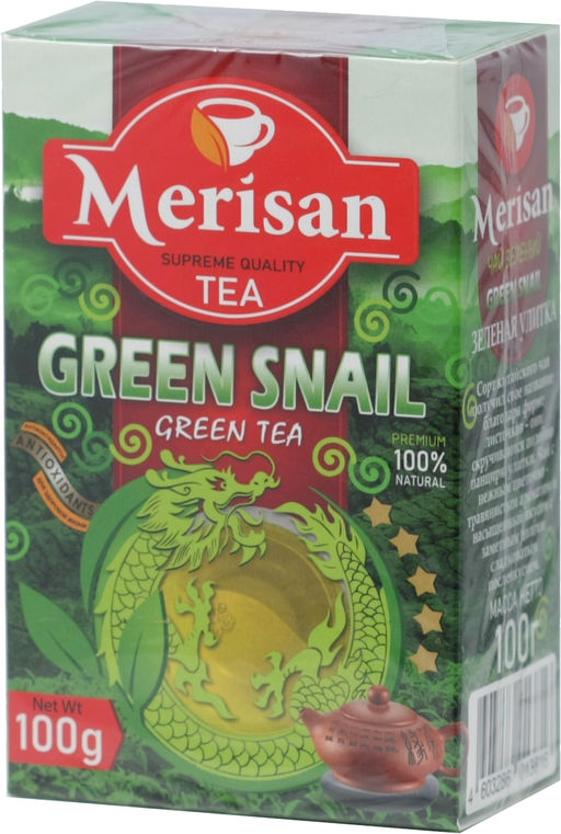 Чай зеленый байховый листовой. Сорт: Snale.Название сорта напрямую связано с улиткой, точнее с ее панцирем. Листочки этого купажа сначала скручиваются в длинный прочный жгут, а потом еще раз скручиваюся подобно панцирю улитки. Готовый напиток получается с нежным цветочно-травяным ароматом и насыщенным вкусом со сладкими нотками.Выбирая чай Merisan, вы выбираете настоящее качество.