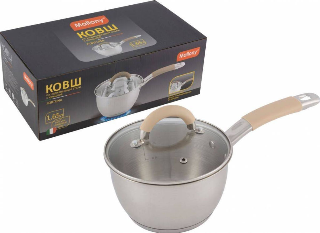 • Ковш Fortuna 1,65л.,из нерж.стали, ручка сталь/силикон, матовый, d-16см, капс.дно, арт. 007216