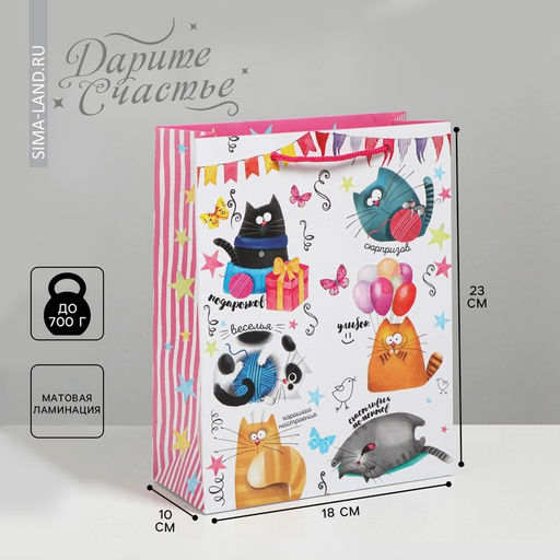 • Цена за 2 шт. Пакет подарочный ламинированный, упаковка, «Забавные коты», MS 18×23×10 см