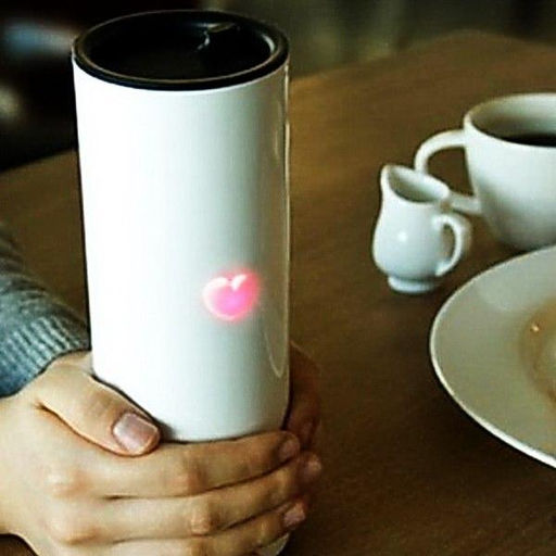 Включается автоматически. При прикосновении к наружной стенке начинает мигать индикатор в виде сердца, меняя цвет в зависимости от температуры напитка. Для большей информативности в нижней части кружки присутствует дополнительный индикатор, который показывает точную температуру напитка.