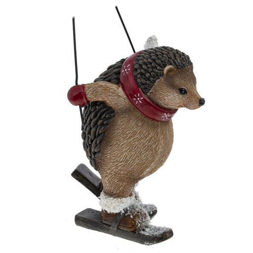 Фигурка в виде милого ежика на лыжах с ярко-красным развивающимся шарфом на шее. Изделие выполнено из полимерных материалов, с особым вниманием к деталям. Фигурка обязательно привнесет нотку очаровательного новогоднего стиля в любой интерьер. Представлено в двух вариантах.