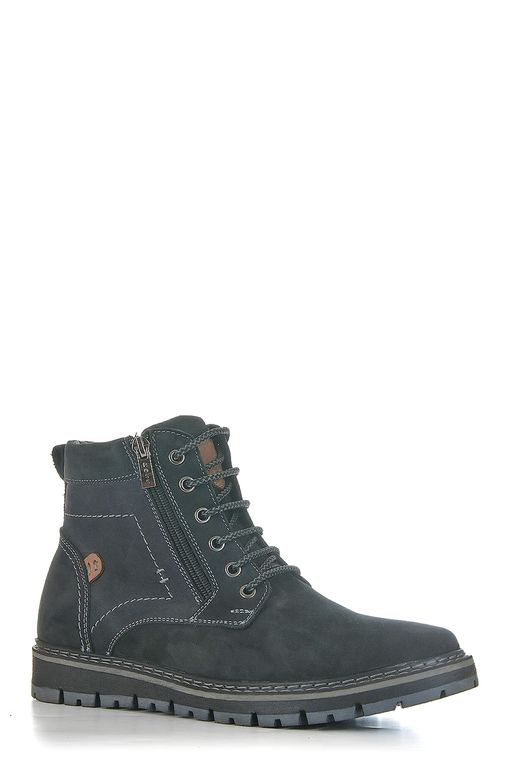 Ботинки мужские выполнены из натурального нубука. Подкладка и стелька из натуральной шерсти. Детали: впереди шнуровка, сбоку молния, декоративные элементы.­