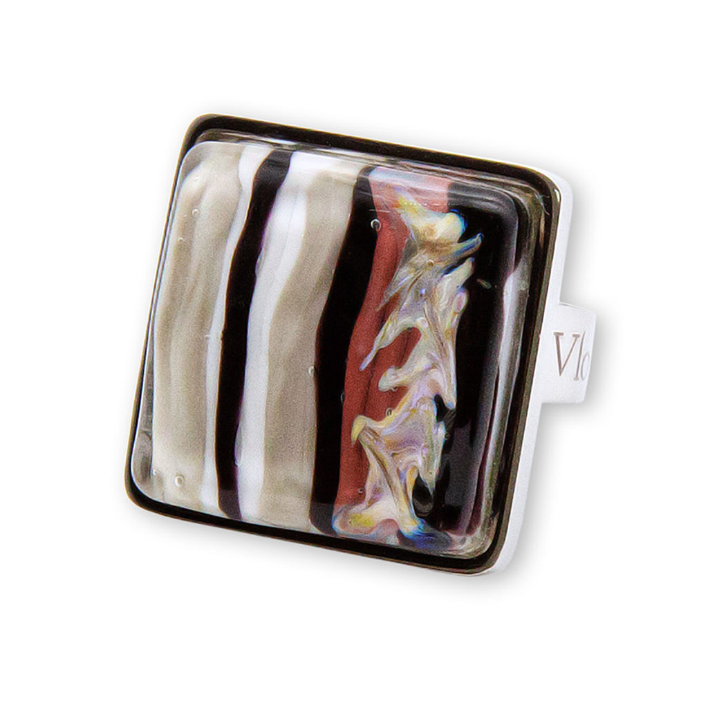 Кольцо изготовлено из муранского стекла и гипоаллергенной ювелирной стали, что очень важно для людей с чувствительной кожей. Металл не темнеет и не подвергается воздействиям окружающей среды, надолго обеспечивая красивый внешний вид изделия. Размер стеклянного элемента - 2,2x2,2 см. Кольцо безразмерное, регулируется с 16 до 19 размера. Вес - 15 гр.