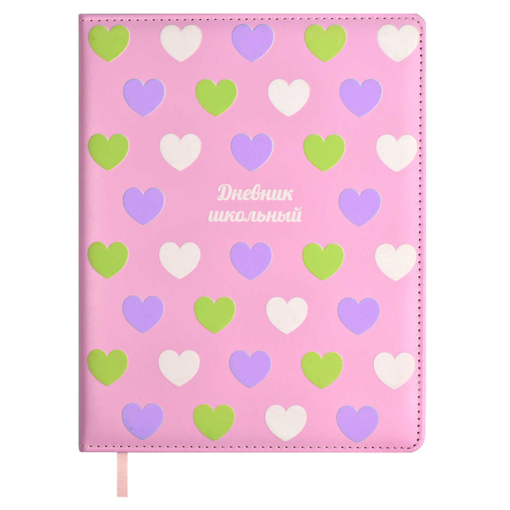 Дневник школьный арт. 68727 / 15 СЕРДЕЧКИ НА РОЗОВОМ (кожзам: А5+; твёрдый переплёт, материал облож