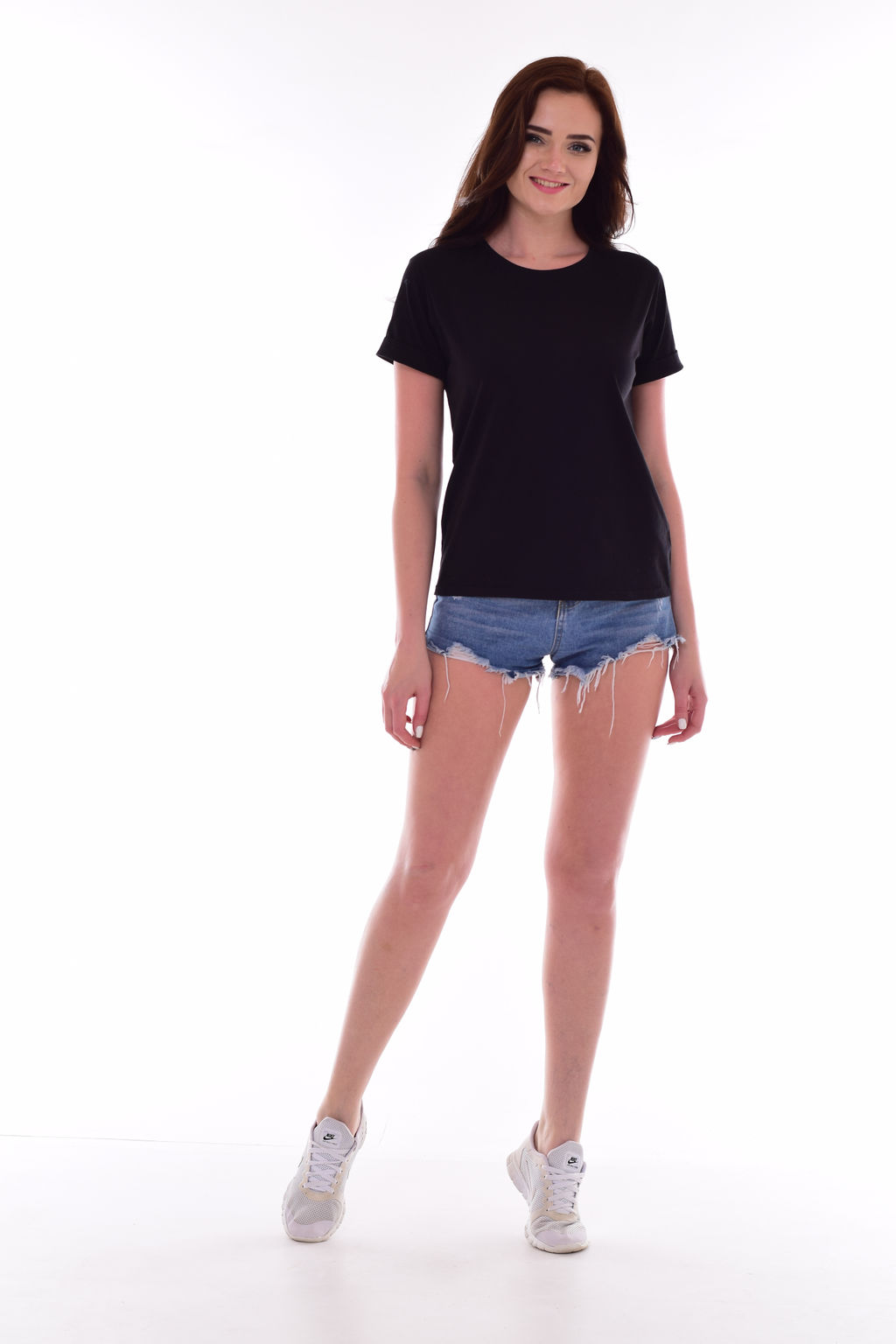Женская повседневная футболка из кулирки. Притачной рукав с отворотом. Горловина притачная. Длина изделия 50 размера: длина футболки по спинке 63 см.