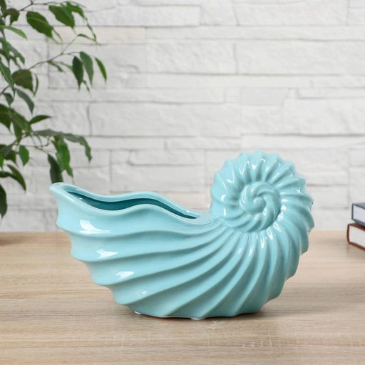 • Керамическая ваза декоративная настольная «Ракушка» наутилус, для цветов, сухоцветов, 9.5×25×15 см, МИКС