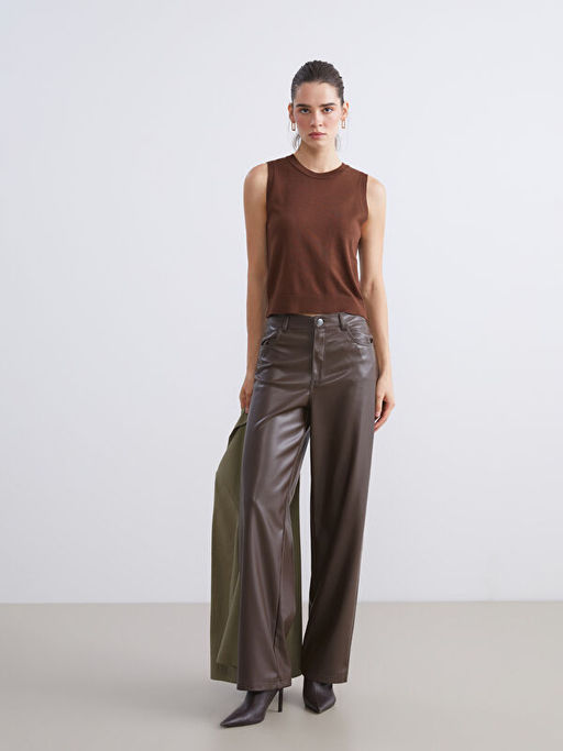 Dar Fit Kad?n Deri G?r?n?ml? Pantolon