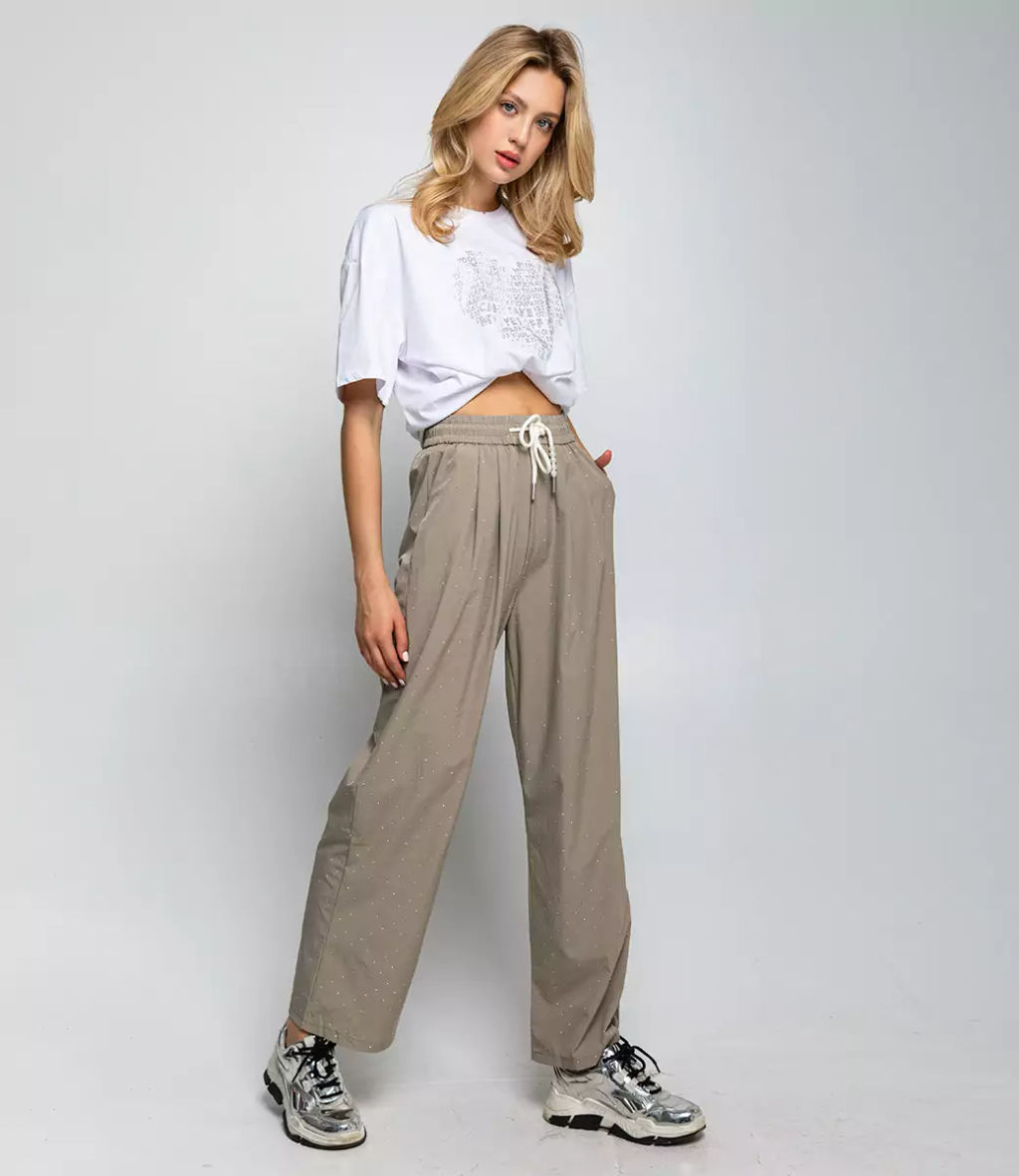 Брюки это одежда, которая подчеркивает привлекательность каждой женщины. Данная модель брюк прямого кроя, украшенных стразами, пригодится для летнего сезона. Ее предпочитают гостьи, которые любят сочетание эксклюзивности и цены. Фасон подчеркивает красоту фигуры. Производитель знает, как разработать уникальные и стильные решения. Для пошива выбрана ткань из 100% полиэстра, которая выделяется безупречным качеством. Даже после многократных стирок изделие не потеряет первоначальной индивидуальности. Вы обязательно будете носить его с радостью. Обратите внимание на цвет. Он является глубоким и соответствует фотографии на сайте. Чтобы вы были уверены в размере, мы предоставили на странице таблицу. С помощью нее вы сможете сами обмерить себя и удостовериться. Предложенная нами цена является невысокой. Подарите себе удовольствие быть неповторимой! Рост 174, 80-58-88.­
