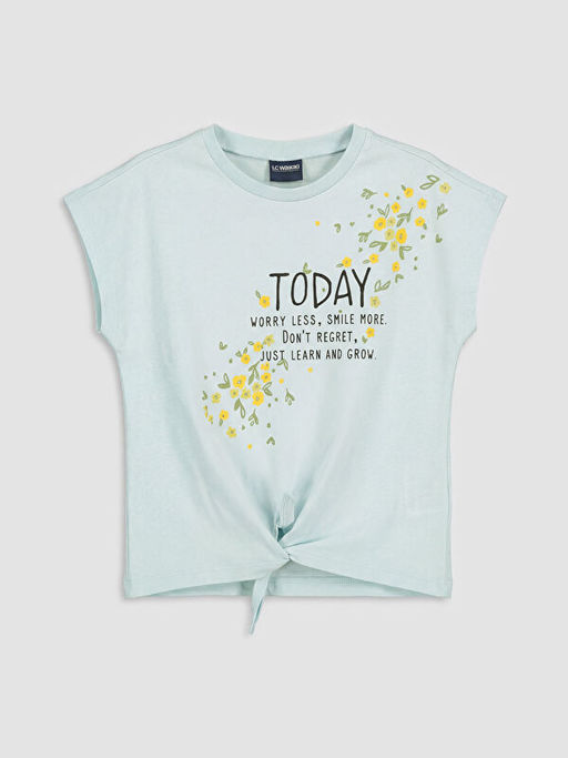 Bisiklet Yaka Bask?l? K?z ?ocuk Ti??rt