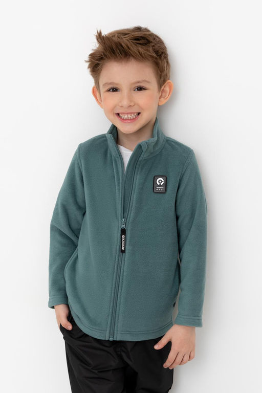 Флисовая куртка для мальчика. У изделия высокий воротник, предусмотрена защита шеи и подбородка, по бокам карманы. Куртка сохраняет цвет и форму после многократных стирок. 100% полиэстер