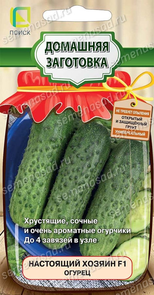 Огурец Настоящий хозяин F1 - ранний партенокарпический гибрид с интенсивной отдачей урожая.