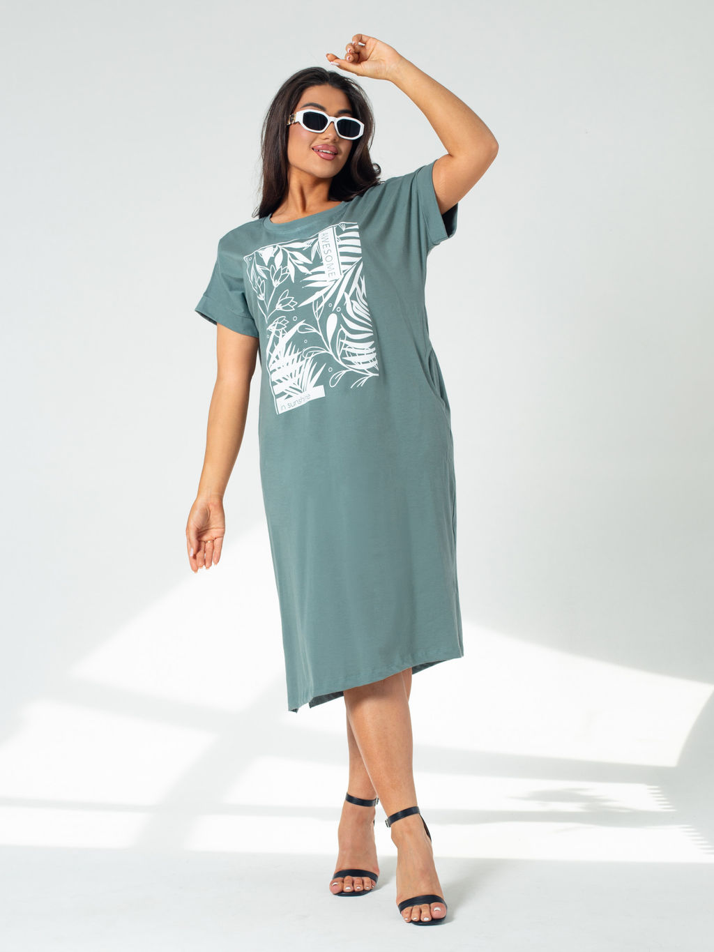 • Платье женское кулирка "ГАРМОНИЯ" СЕРО-ЗЕЛЕНЫЙ