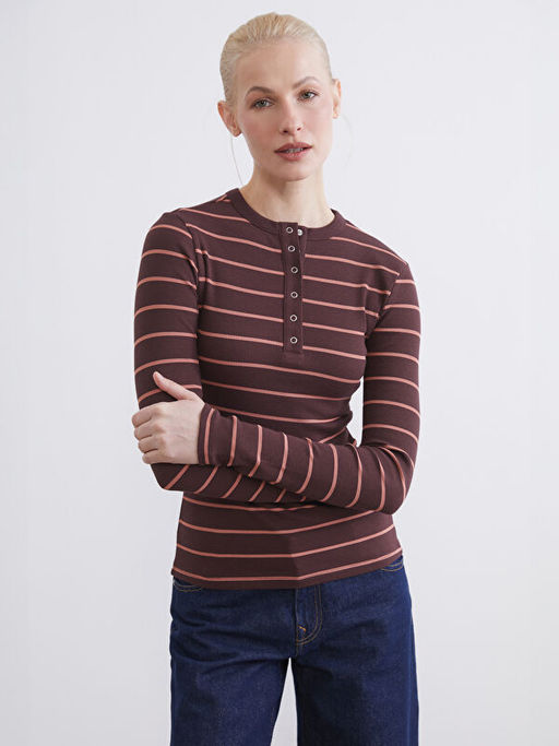 Bisiklet Yaka ?izgili Kad?n Body