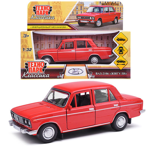 Машина металл ВАЗ-2106 13 см, двери, багаж, красный, в коробке