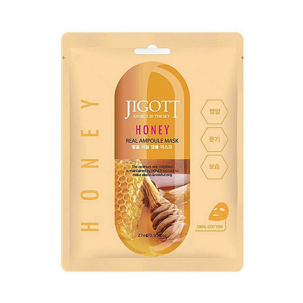 Ампульная маска Jigott Honey Real Ampoule Mask с экстрактом мёда ухаживает и преображает кожный покров благодаря насыщению клеток живительной влагой, полезными и питательными веществами. Средство разработано на основе активных компонентов природного происхождения, среди которых мед мощный антиоксидант, омолаживающий и антивозрастной агент, а также прополис, богатый большим количеством аминокислот, полифенолов, микроэлементов и ферментов, необходимых для правильного функционирования кожного покрова.