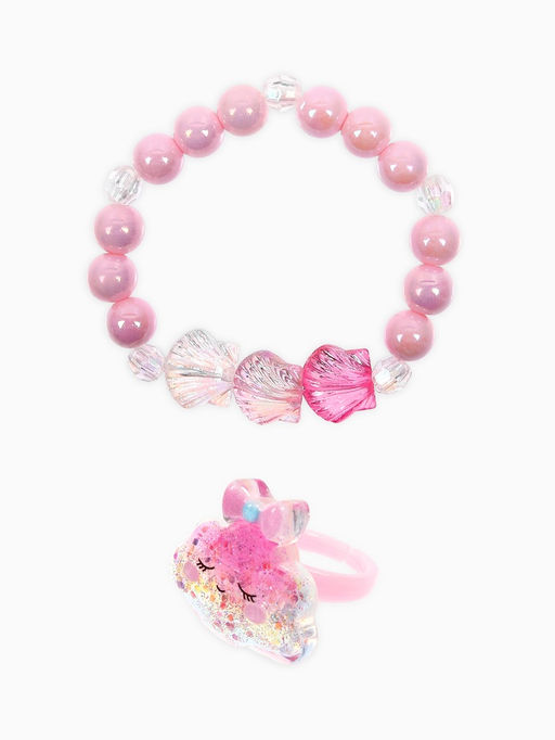 Цена за 2 шт. Набор детский "Выбражулька" 2 пр-та: кольцо б-р, браслет 6 см, ракушки, розовый