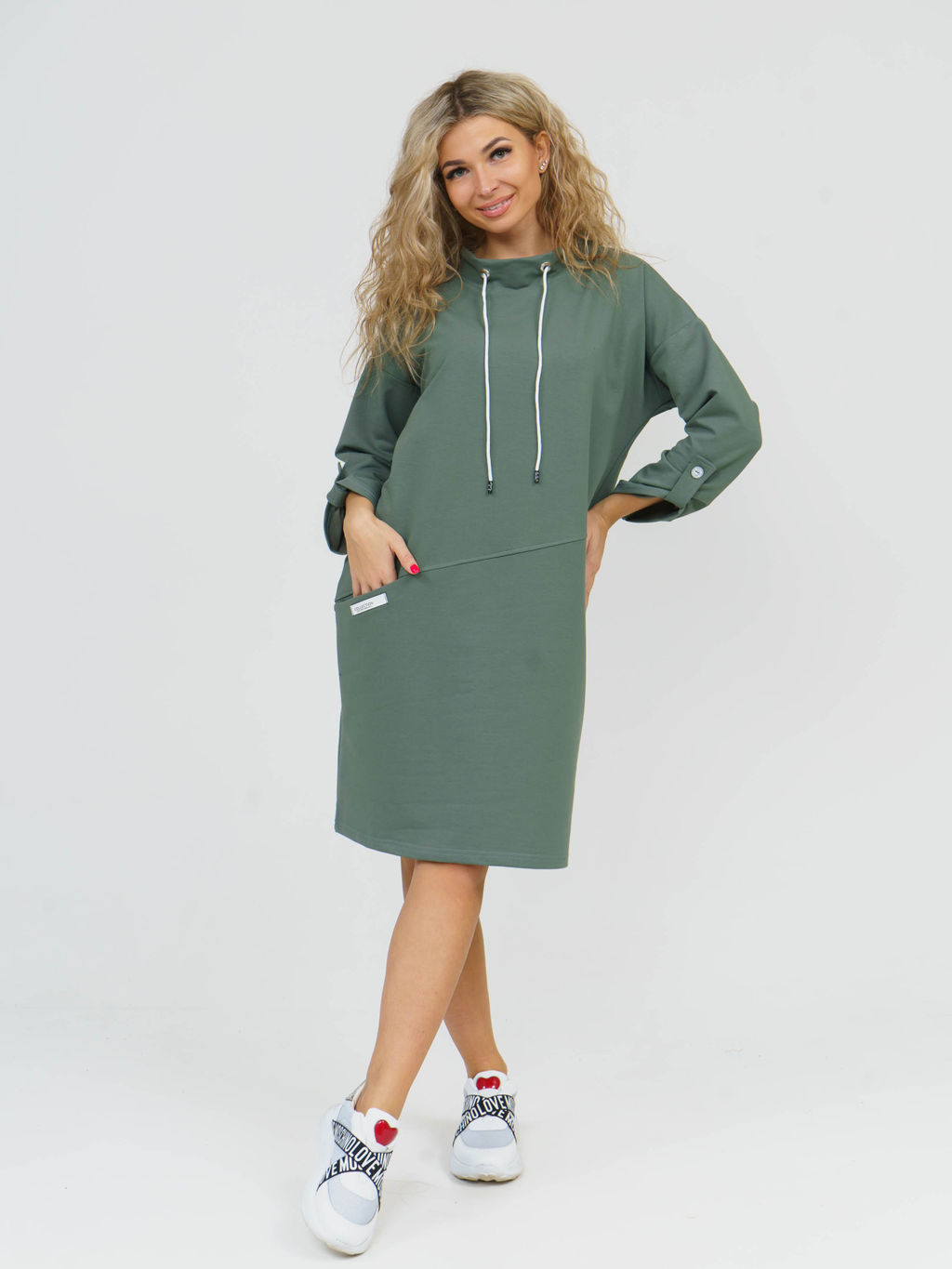 Обратите внимание: фото изделия сделано при искусственном освещении в студии, вживую - цвета могут немного отличаться. Модель прямого силуэта со спущенным плечом, выполнена из трикотажного полотна футера (2-х нитка с лайкрой). Платье с воротником стойкой и с регулируемыми патами на рукавах.  В качестве отделки переда выполнен ассиметричный подрез, в котором расположен прорезной карман. Спинка без конструктивных особенностей. Низ ровный. Завершает образ стильная нашивка на кармане. Любите сочетать в одежде стиль и удобство? Тогда вам понравится это женское длинное платье-водолазка с коротким воротником. Это великолепная нарядная модель, как будто создана для особых моментов, когда нужно чувствовать себя уверенно и изящно. Оно идеально подойдет женщинам, мамам девочек и даже для беременных. Из трикотажного материала, оно обтягивает фигуру, подчеркивая очарование своей обладательницы.