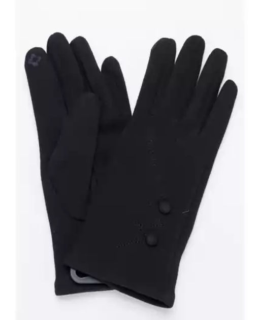 Женские перчатки,выполненные из трикотажного полотна, имитирующего внутри искусственный мех, декорированы вышивкой и пуговицами, на большом и указательномпальцах вышивка "сенсорными"нитками, размер 18.