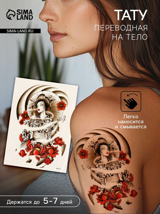 • Цена за 2 шт. Переводная тату на тело цветная Женщина Сакура, 26.1?14.6 см