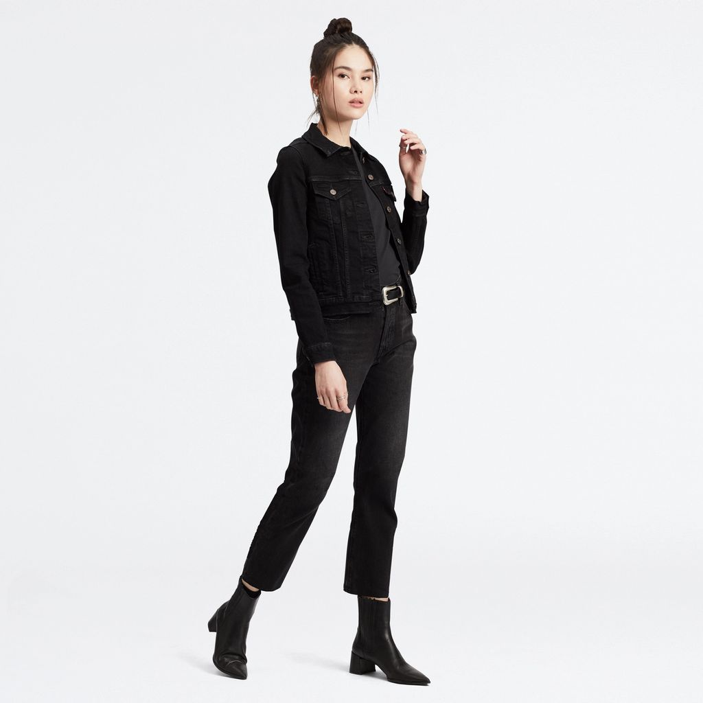 Женские джинсы Levis 501 черного цвета. Выполнены из денима с добавлением эластана для комфорта движения. Прямой укороченный крой, высокая посадка. Легендарная кожаная нашивка на задней стороне пояса. Застежка на пуговицы. Карманы спереди и два кармана с фирменной строчкой Levis сзади.