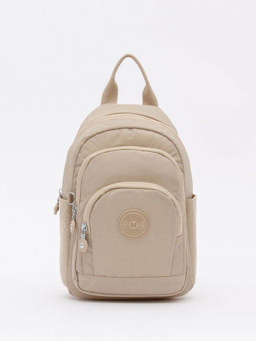 Удобный рюкзак, выполнен из текстиля. Дополнен серебристой фурнитурой. Данная модель закрывается на молнию. Каркас мягкий. Рюкзак носится в руке или на плече. Встроенные ремни регулируются по длине, а так же ремни можно соединить.