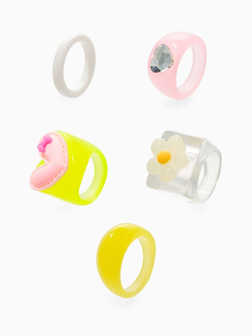 • Набор колец 5 шт. «Стиль лёгкий. Цветы и сердечки», размер МИКС (17-19), цветные