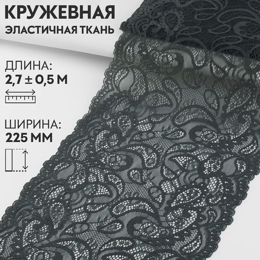 Кружевная эластичная ткань, 225 мм, 2.7±0.5 м, графитовая