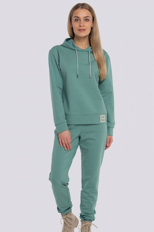 Перед тем, как отправиться на прогулку, шоппинг или активный вид отдыха, каждая женщина задумывается о наряде, который будет практичным и одновременно стильным. Модный трикотажный костюм с брюками прекрасно справляется с этой ролью. В комплекте трендовая укороченная толстовка и брюки на резинке. Толстовка с капюшоном, низ изделия и низ рукава обработаны поясом и манжетами. В капюшон вставлен светоотражающий шнур. На поясе пришита фирменная кожаная нашивка. Брюки свободные, низ брюк на манжете, пояс на резинке. В боковых швах карманы. Состав трикотажа: 75% хлопок, 20% полиэстер, 5% спандекс.