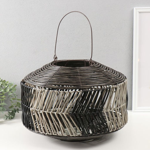 • Подсвечник - фонарь на 1 свечу «Лист из лозы», пластик, чёрно-белый, 15×38×27 см