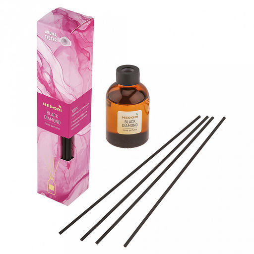 • Ароматический диффузор 50мл "Black Diamond" 4х4х21,5см, настольный, стекло, палочки из микрофибры, парфюм, с пробником аромата, в коробке, "Medori" (Россия)