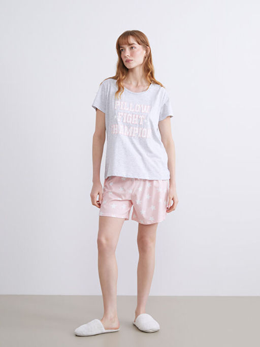 • Y?ld?z Desenli Kad?n ?ortlu Pijama Tak?m?