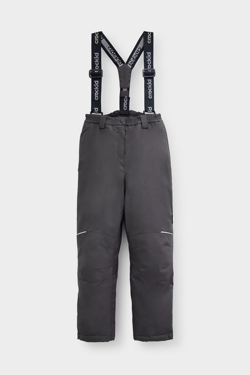 Зимние детские брюки с утеплителем 120 г/м2 на мягкой подкладке из полиэстера Tricot. Рекомендованный температурный режим - от 0 до -25. Мембранная ткань 5000/5000 покрыта тефлоновой пропиткой, отталкивающей воду и грязь. Мембрана обладает "дышащими" свойствами и гарантирует идеальный воздухообмен. Лёгкий утеплитель отлично сохраняет тепло, позволяет активно двигаться, не сковывая движений. Благодаря удобному поясу с застёжкой на кнопку и молнию брюки идеально сидят на фигуре. Подтяжки регулируются по росту. Колени с анатомическим кроем и низ усилены дополнительными вставками из основной ткани. Низ регулируется под ширину обуви при помощи кнопки. Внутренняя снегозащитная юбка на резинке snow stopper надёжно фиксирует брюки на ноге и обеспечивает дополнительную защиту от попадания снега. Светоотражающие элементы служат для дополнительной безопасности в тёмное время суток. По бокам удобные карманы, укреплённые закрепками. *Температурный режим носит рекомендательный характер и зависит от индивидуальных особенностей ребёнка.. Состав: верх: 80% нейлон, 20% полиуретан; подклад: 100% полиэстер; утеплитель: 100% полиэстер